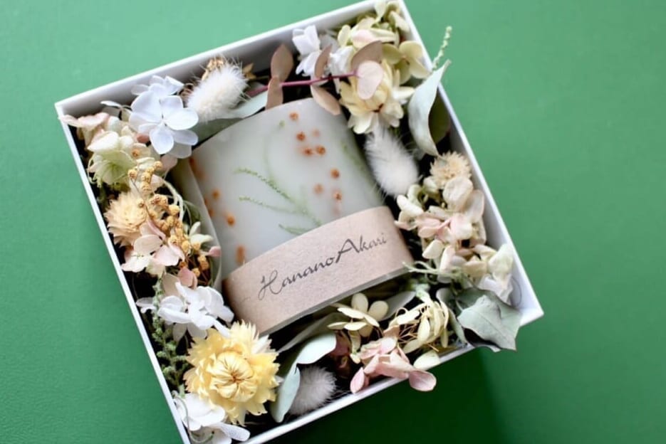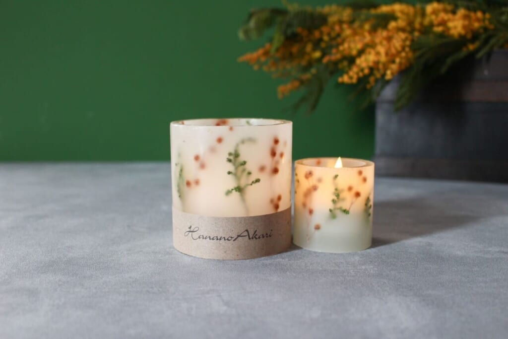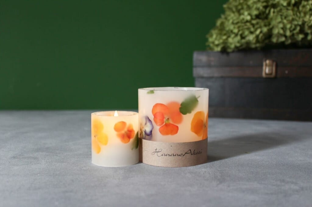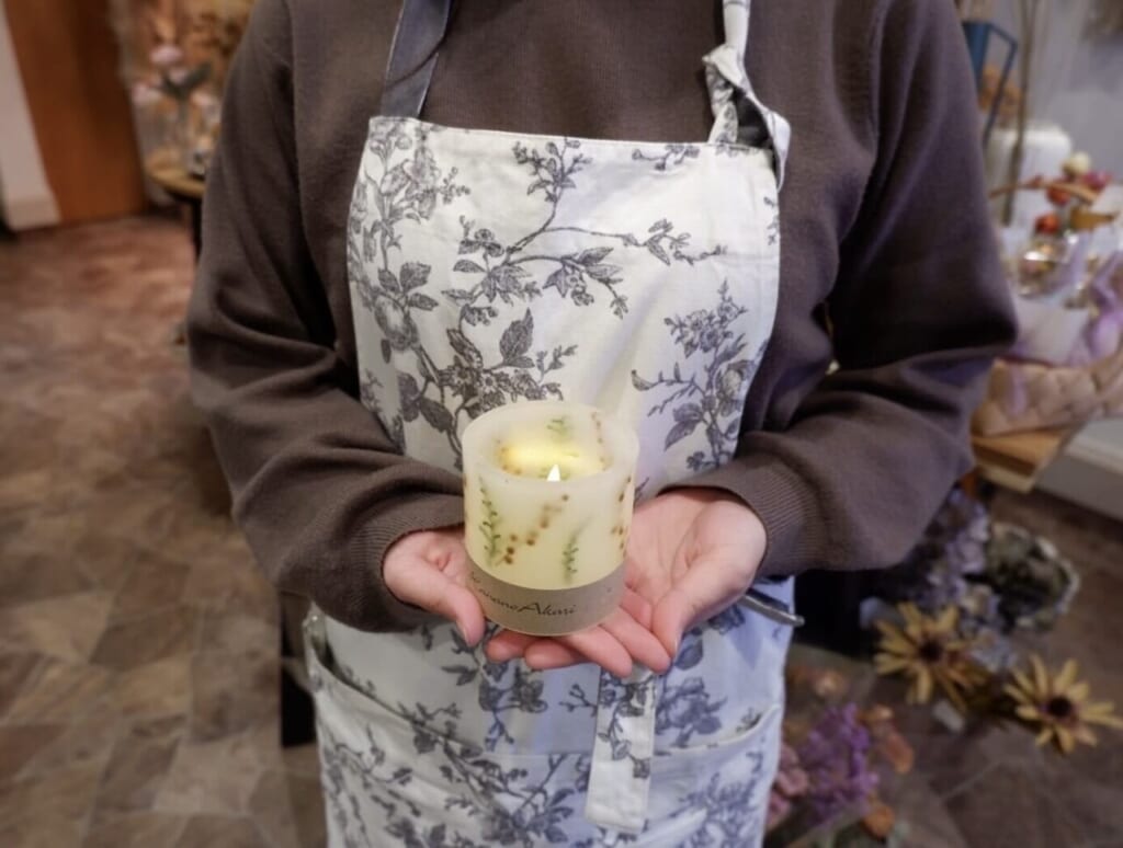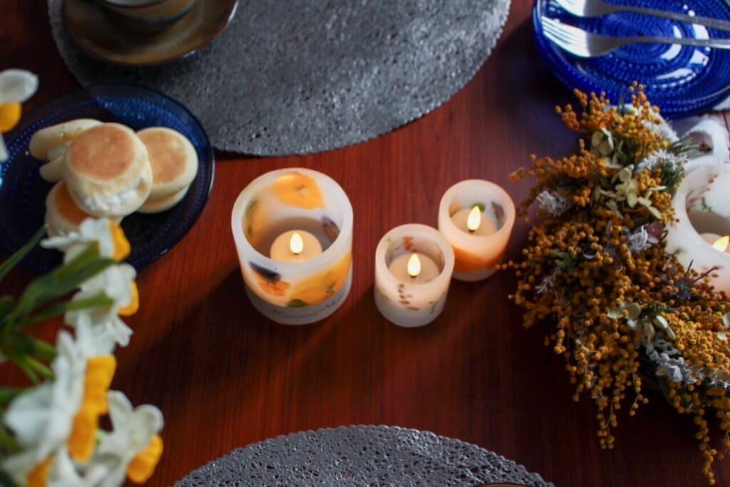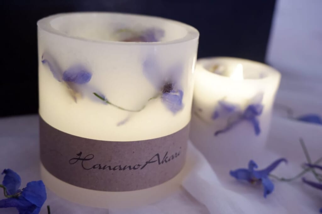 (キャンドルの)中に桜とか、キンモクセイの花びらを入れたり。氷をイメージして形をつくってみたりして。