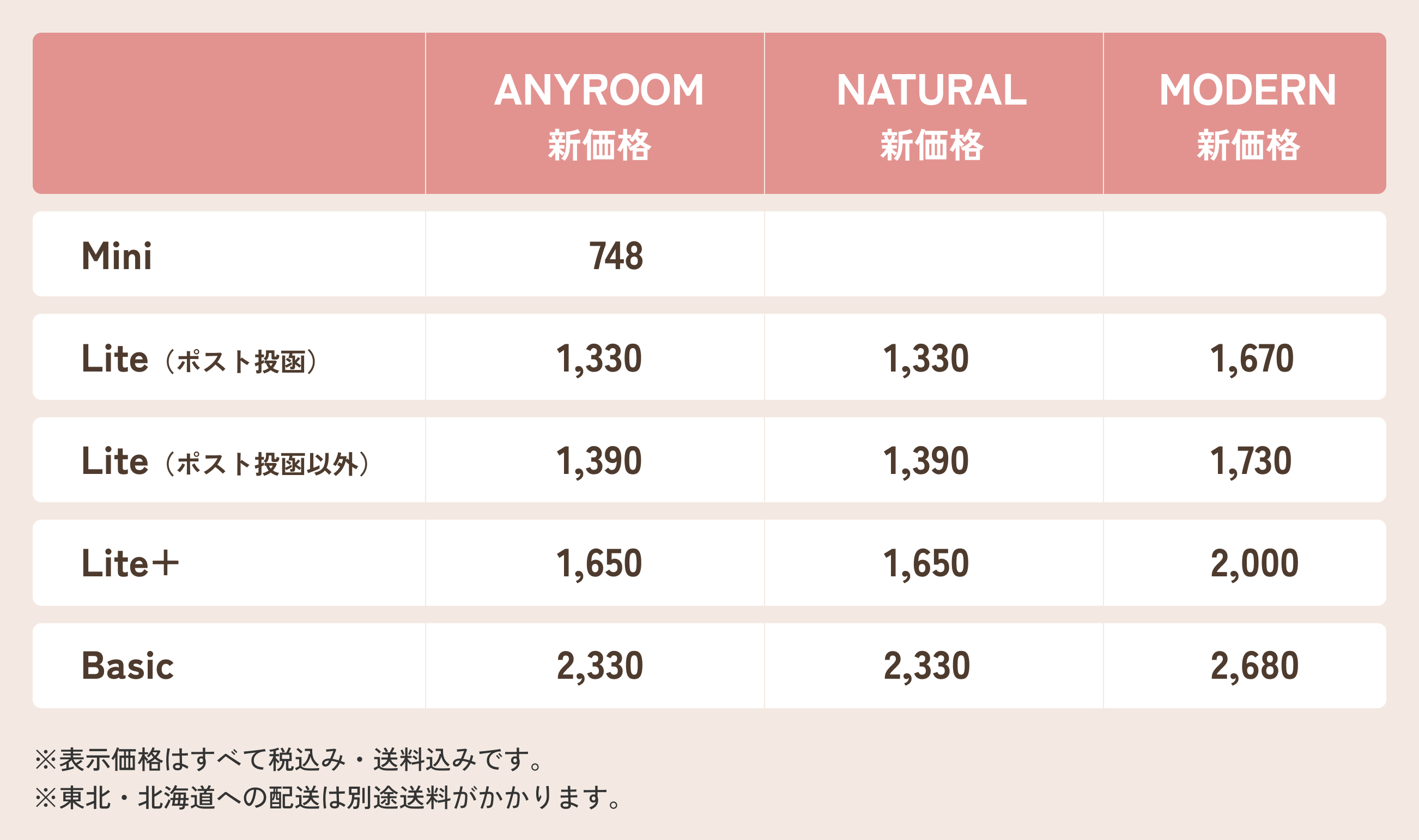 5月29日(金)の決済分(6月1日(月)以降のお届け)より新価格が適用されます。